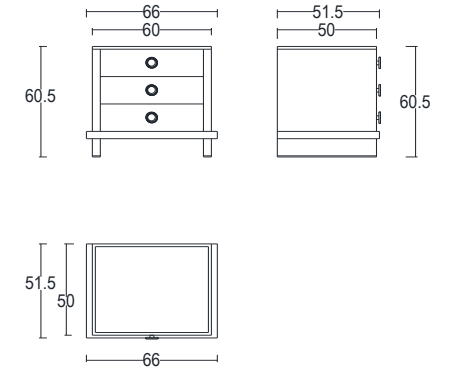 / Comodino con Tre Cassetti 60