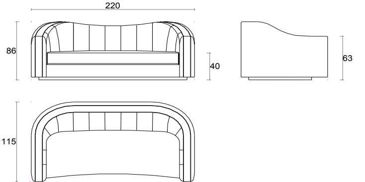 L 220 × P 115 × A 86