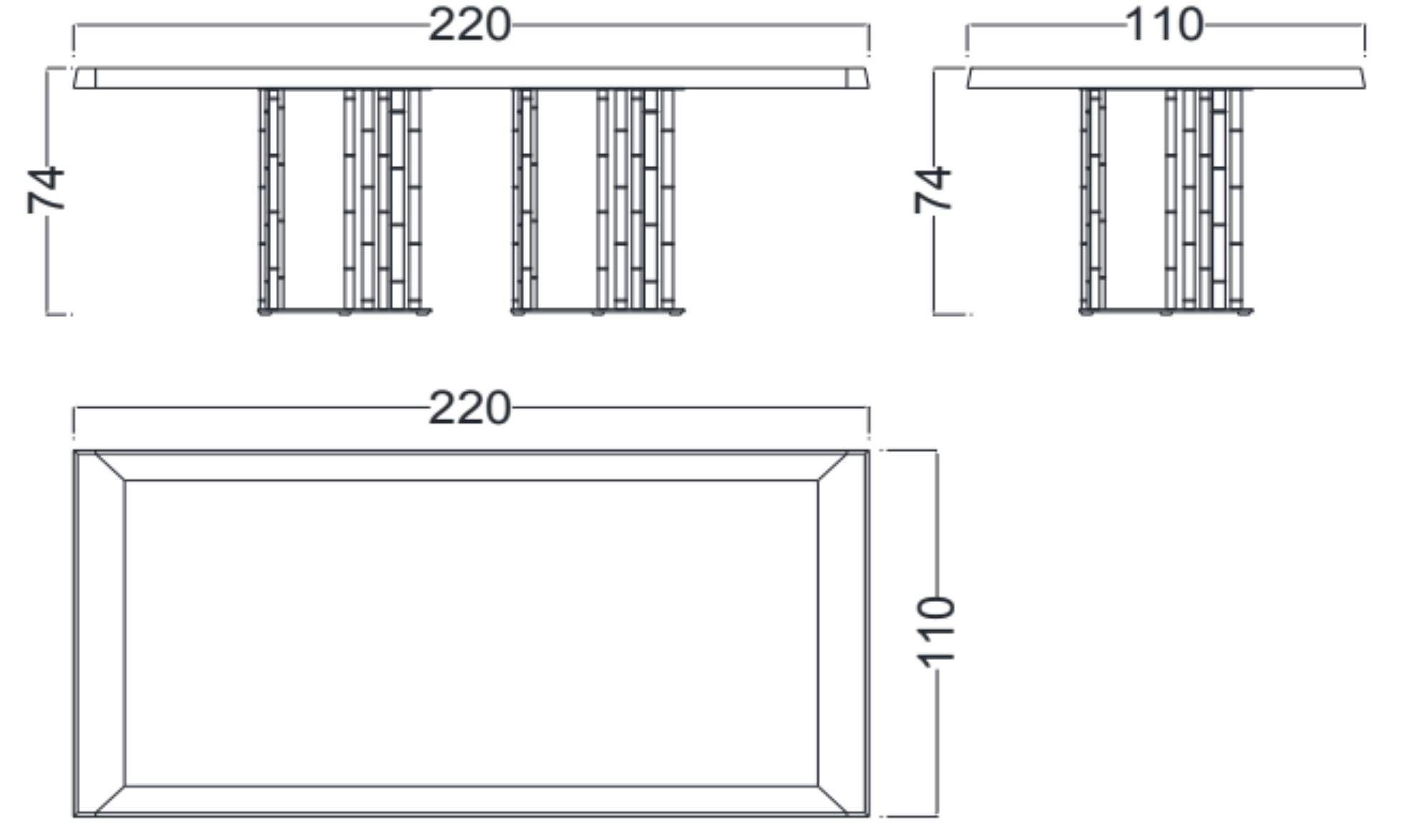 L 220 × P 110 × A 74