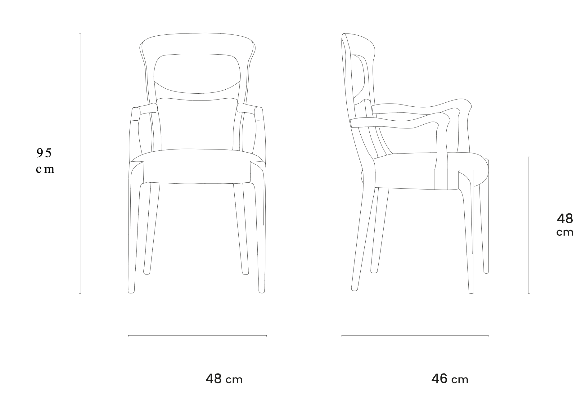 Sedia in Noce Massello Grigia con Braccioli Capotavola | Colore: Velvet G075 129
