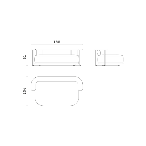 • L 188 × P 106 × H 61 cm