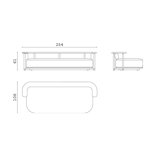 • L 254 × P 106 × H 61 cm