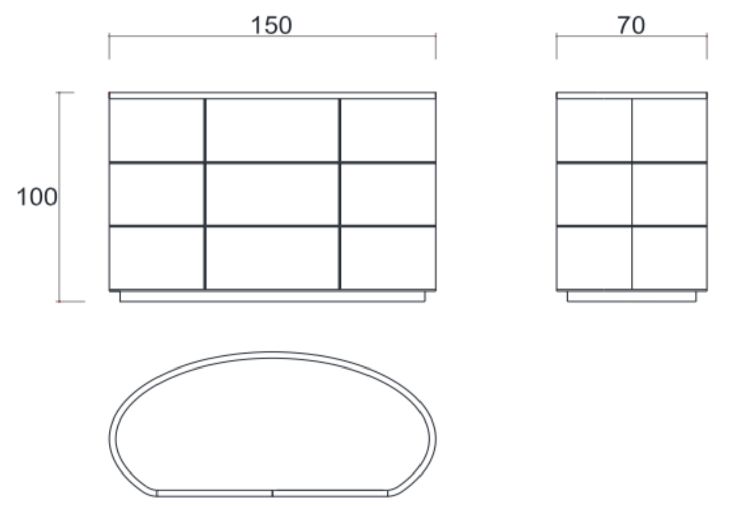L 150 x P 70 x A 100